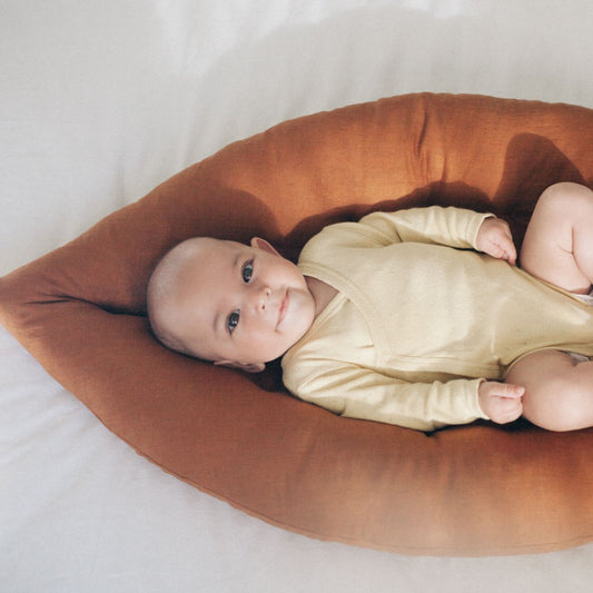 O teu bebé vai ser aconchegado pelo nosso linho suave e respirável, um tecido ecológico que provém de uma fibra que cresce de forma sustentável, sem o uso de qualquer tipo de químicos. É também durável e ajuda a regular a temperatura corporal.